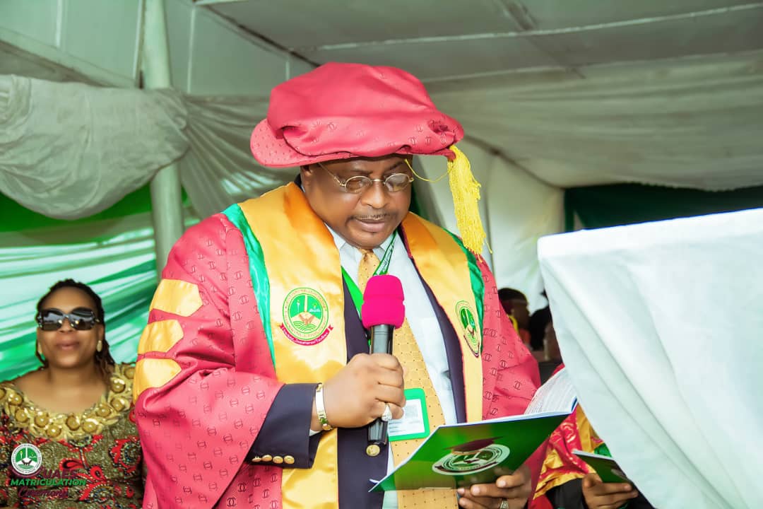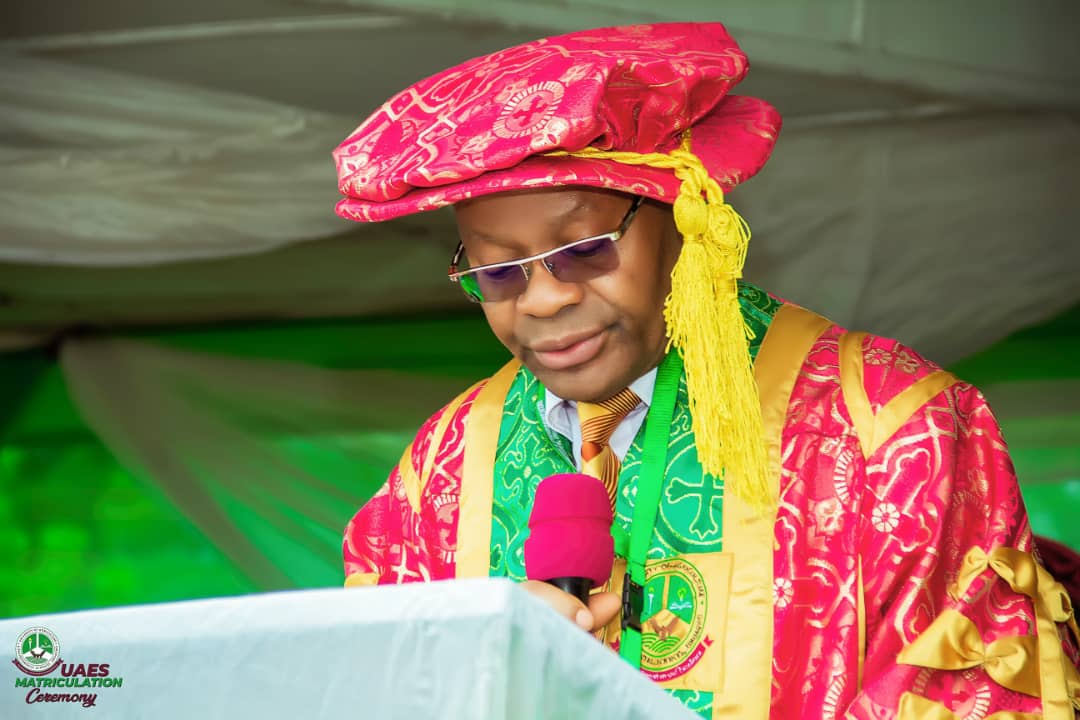 Acting Vice Chancellor, UAES, Prof Chiedozie Eze reading his matriculation address